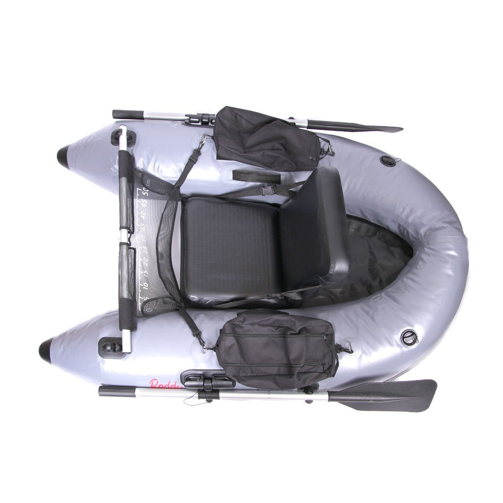 Baddy renkaan erikoisuutena on airot, joita ei kaikista markkinoilla olevista kelluntarenkaista löydy. Kevyiden alumiinivartisten airojen avulla soudat ripeästi ja helposti kelluntarenkaalla paikasta toiseen. Airot ovat kiinnitettynä renkaaseen ja ne saa kalastuksen ajaksi kiinnitettyä toisestakin päästä ponttoonin reunaan etteivät ne olisi tiellä kalastuksen aikana. Baddyllä voit toki kulkea perinteisesti räpylöitä käyttäen myös ilman airoja.