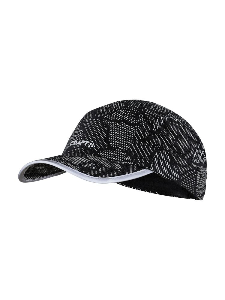 Tyylikäs juoksulippis, jossa on ergonominen muoto ja heijastava printti. Sisäpuolella kosteutta siirtävä hikinauha. Säädettävä istuvuus.