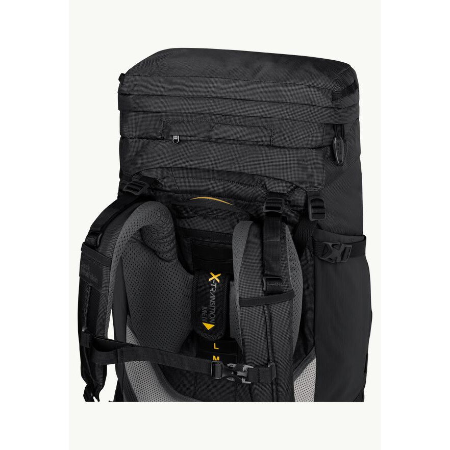 X-Transition kantojärjestelmä on suunniteltu erityisesti raskaiden taakkojen kantamiseen pitkillä matkoilla. Rinkassa on kevyt alumiininen ristituki. Tämä ominaisuus tekee rinkasta vakaan ja mukavan kantaa. Selän pituus on säädettävissä ja jämäkkä lantiovyö siirtää painoa lantiolle. Rintahihna on myös säädettävissä. Selkäosassa olevat pehmusteet hellivät selkää. Selkäpehmusteiden väliin jäävä tila mahdollistaa ilmankierron. Kantomukavuutta lisää hyvät kuorman kiristysmahdollisuudet rinkan sisällä ja ulkopuolella.