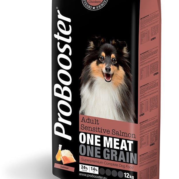 ProBooster Adult Sensitive Salmon on kehitetty erityisesti vastaamaan herkkien ja ruoka-aineallergioista kärsivien koirien ravitsemustarpeita.