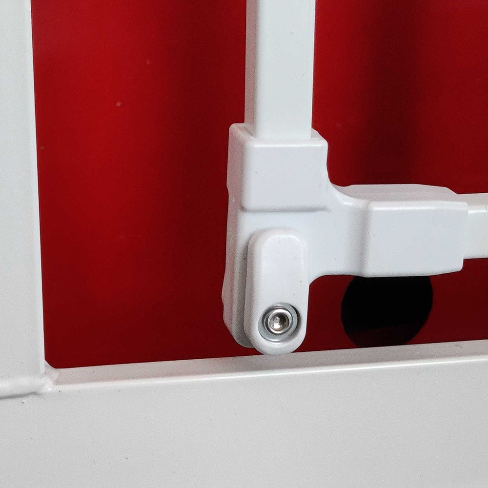 Portti soveltuu sellaisenaan 73,66-86,36 cm leveisiin oviaukkoihin. Pakkaukseen sisältyy kaksi jatkopalaa (10,16 cm ja 15,24 cm), joilla leveys saadaan kasvatettua jopa 111,76 cm:iin.