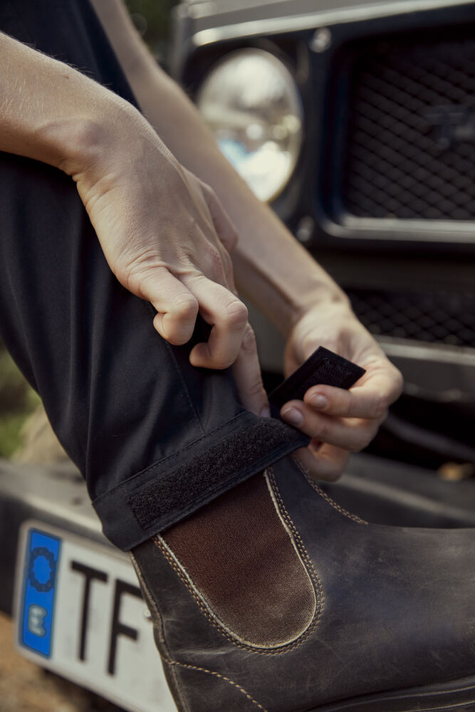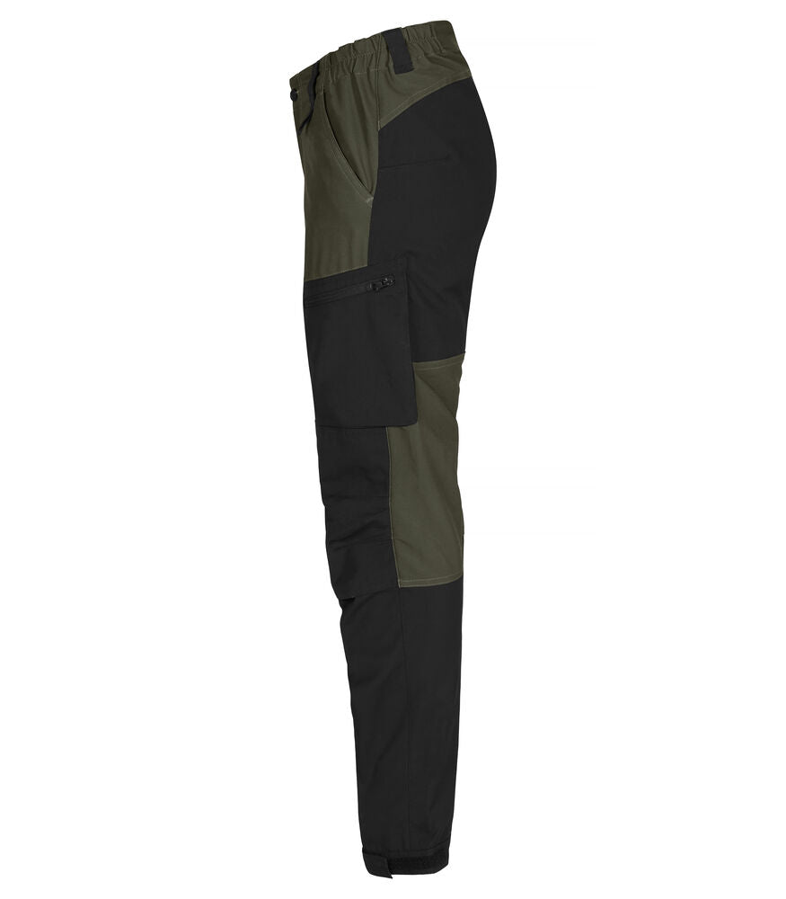 Modernit vaellushousut, jotka on valmistettu mukavasta ja hengittävästä neljään suuntaan joustavasta materiaalista. Joustavat vyötärö ja muotoillut polvet parantavat liikkuvuutta. Kaksi etutaskua, kaksi vetoketjullista reisitaskua ja yksi takatasku. Säädettävät lahkeensuut kuminauhalla ja tarralla. Mahdollisuus lisätä polvisuojat.