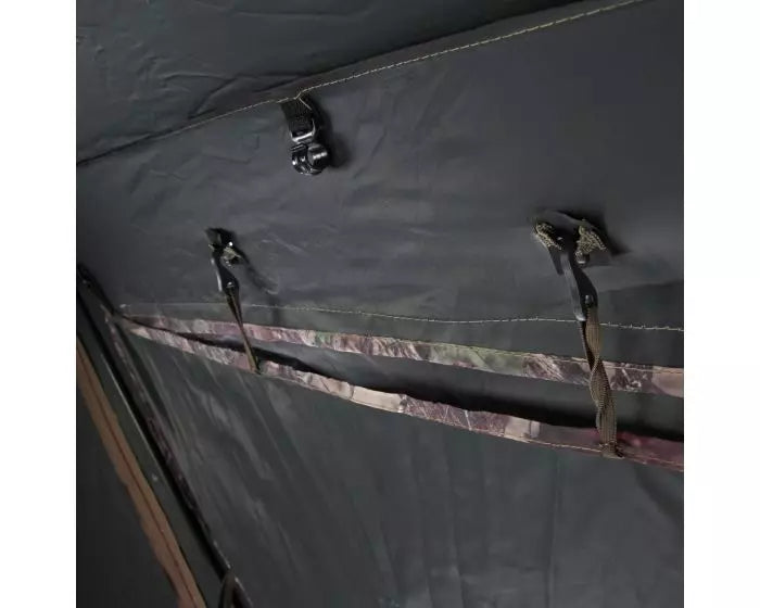 Teltan etuosassa on suuri avattava ikkunaluukku, josta on 180° näkymä ulos. Ikkunaluukku voidaan pitää kokonaan auki tai osittain auki. Ikkunasta onnistuu myös tarkkailu camo verkon läpi. Tarvittaessa jopa ammunta verkon läpi onnistuu. Ikkunan säätö tapahtuu hihnojen avulla. Teltan takaosassa on kolmionmuotoisia ikkunoita, joista onnistuu tarkkailu tai ammunta päinvastaiseen suuntaan. Teltassa on kaksi kolmion muotoista suurta oviaukkoa, jotka suljetaan vetoketjujen avulla.