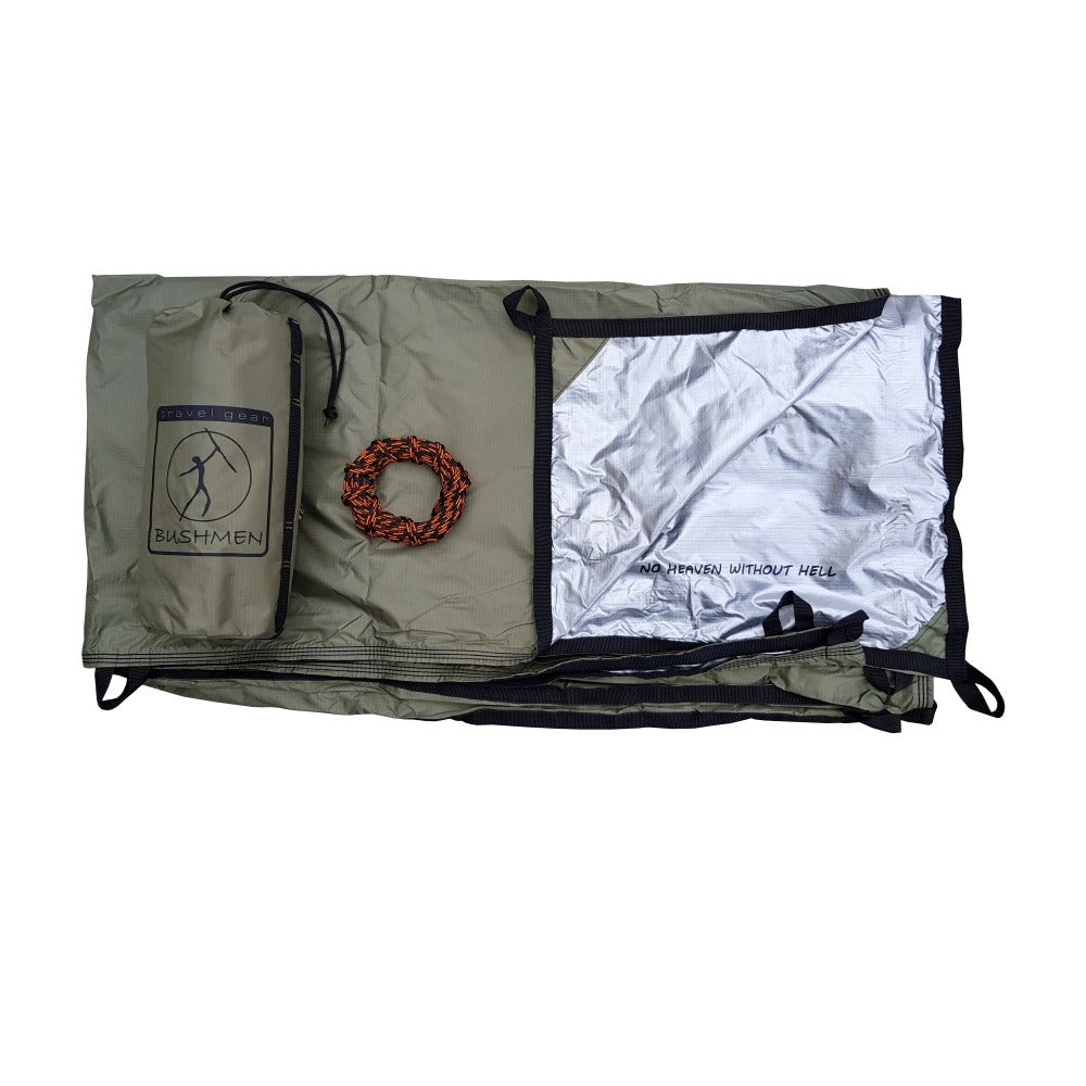 Käyttötavat – tarpissa on vahvistetut kiinnityslenkit joilla teet monenlaisia laavumalleja, kuten A-B ja C, hätävara vuode.