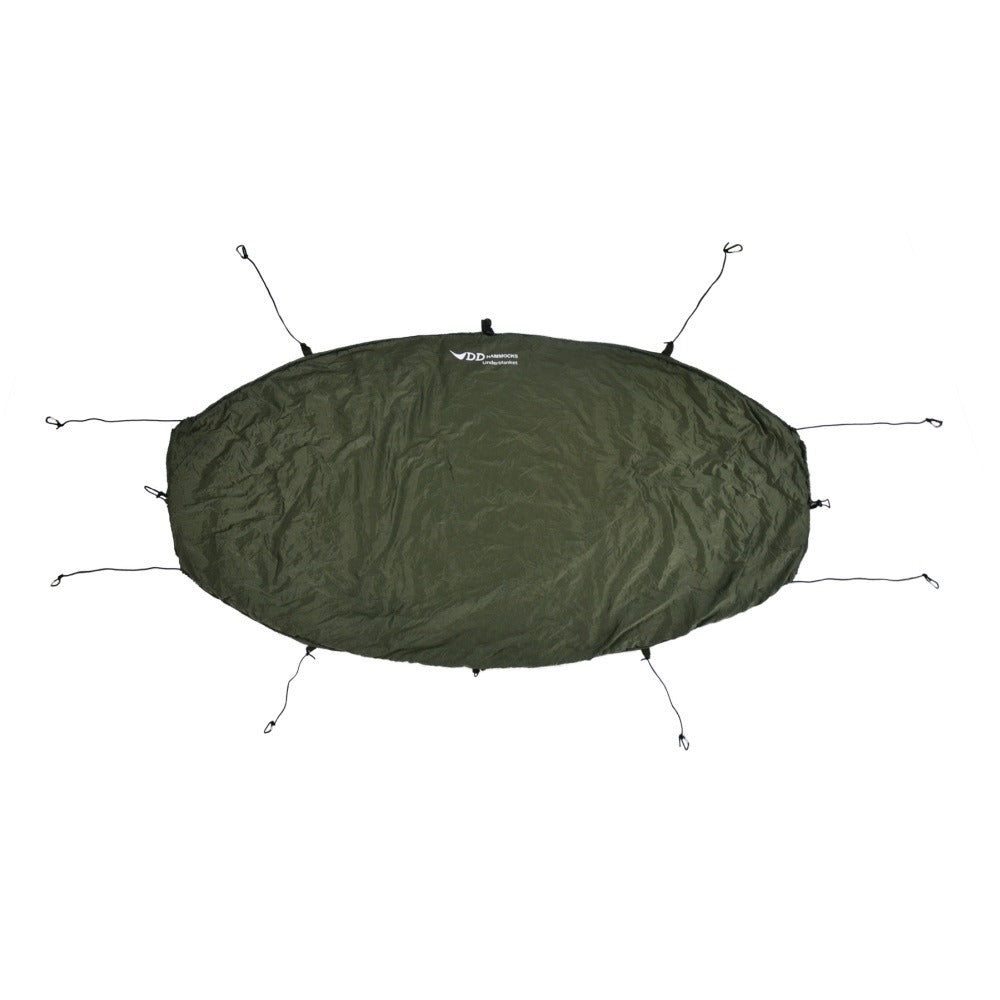 Havainnekuvasta näkee, että siinä on kahdeksan lenkkiä, joissa on karabiinit vaivatonta kiinnitystä varten. On mahdollista kiinnittää alushuopa neljällä karabiinilla, mutta kaikissa DD riippumatoissa (valmistettu 2012 jälkeen) on sivulenkit istuvampaa kiinnitystä varten.