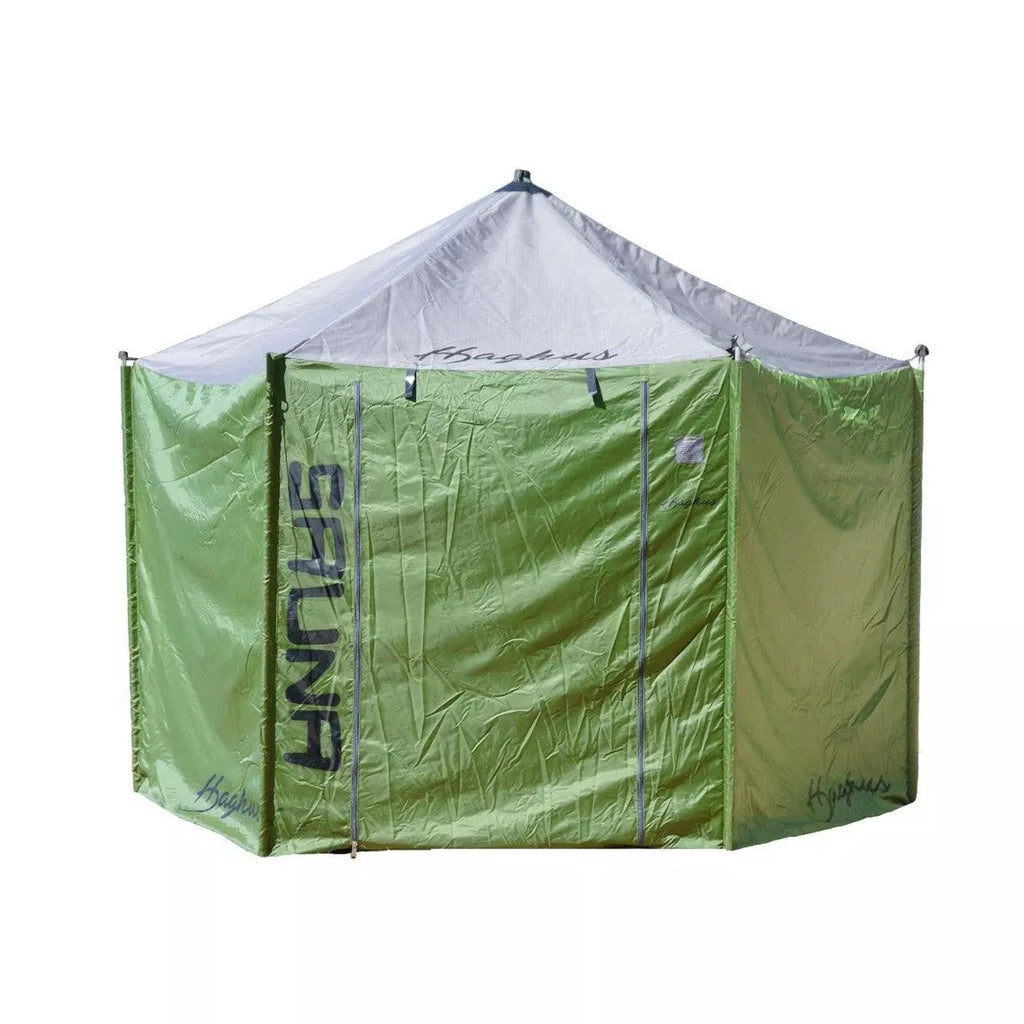 Mikä sen mukavampi kuin sauna retkellä. Telttasaunalla se onnistuu kätevästi. Saunomaan sopii hyvin 4 henkilöä, kuusikulmion mallisen teltan leveys on 240cm, harjakorkeus säädettävissä keskisalosta 192-215cm välillä. Sivusalkojen korkeus 145cm. Valmistettu palamattomasta polyesterista. Sisältää alumiiniset telttasalot, keskisalon, narut, kiilat ja reppumaisen kantopussin. Helppo ja nopea pystytys. Paino 8.9kg.