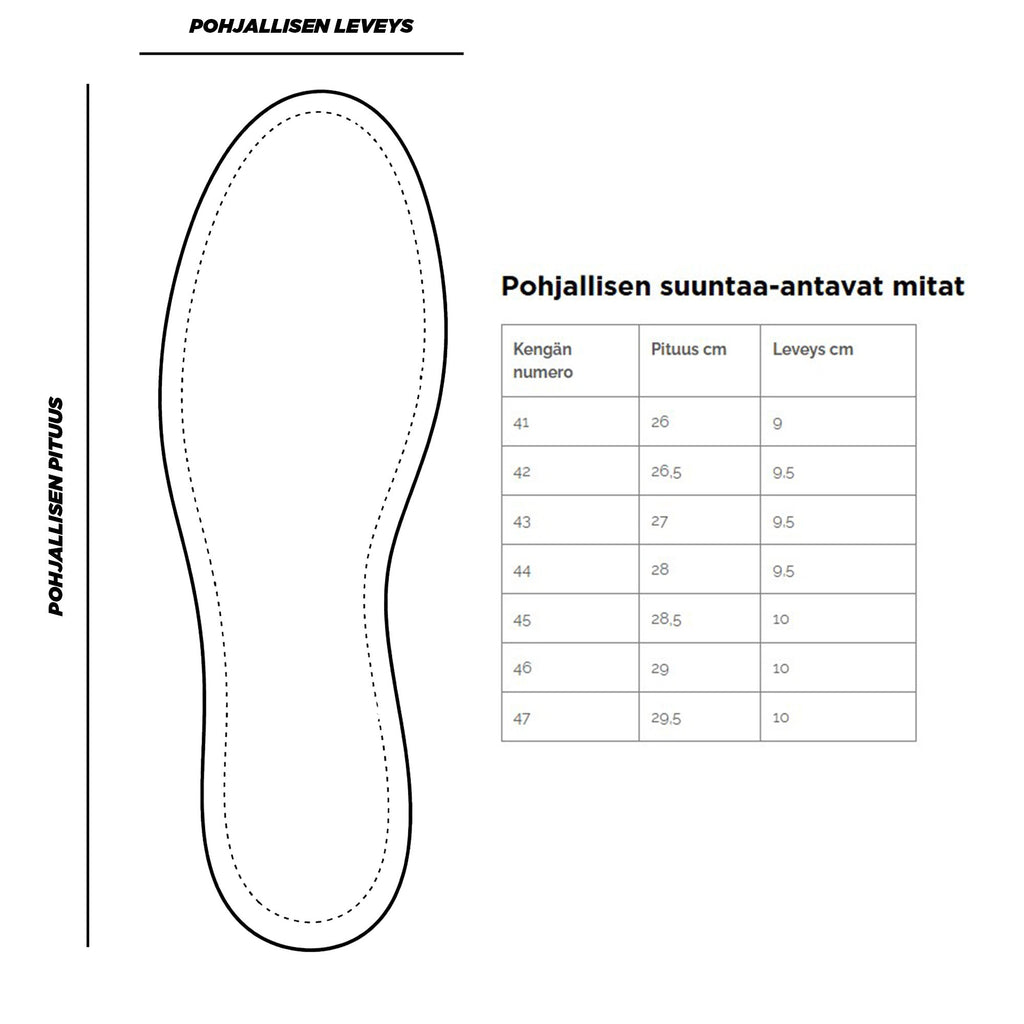Pohjallisen suuntaa-antavat mitat: