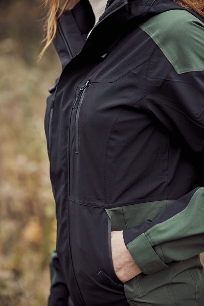 Unisex-mallinen vaellustakki. Moderni leikkaus. Vedenpitävät SBS-vetoketjut rinta- ja sivutaskuissa, yksi vetoketjullinen sisätasku, teipatut saumat ja verkkovuori. Takana kiristysnyöri istuvuuden ja liikkuvuuden säätämiseen. Kainaloissa vetoketjut tuuletusta varten.
